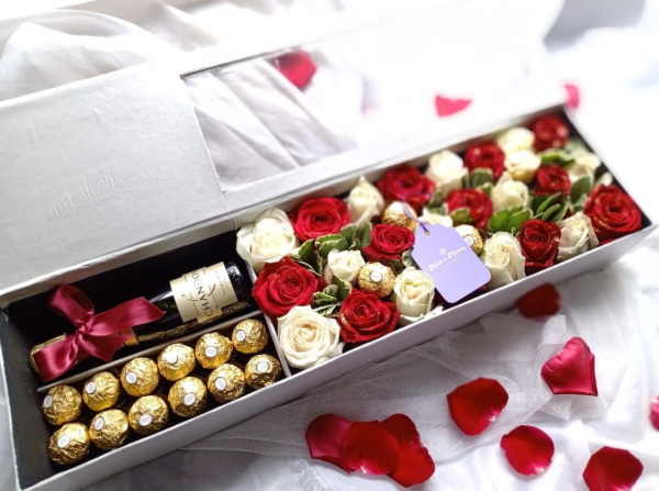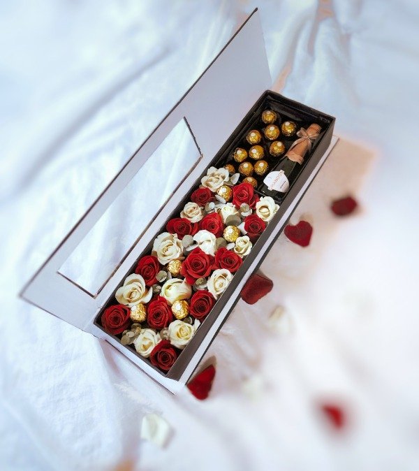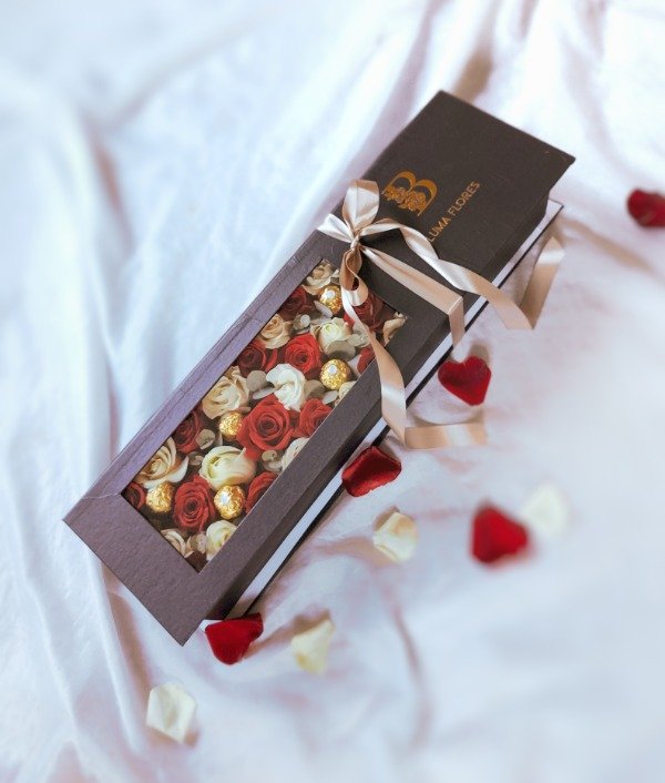 Box con visor/ 24 Rosas /Ferreros Rocher (16 unid.)/ Chandon 187 ML (1 unid.)